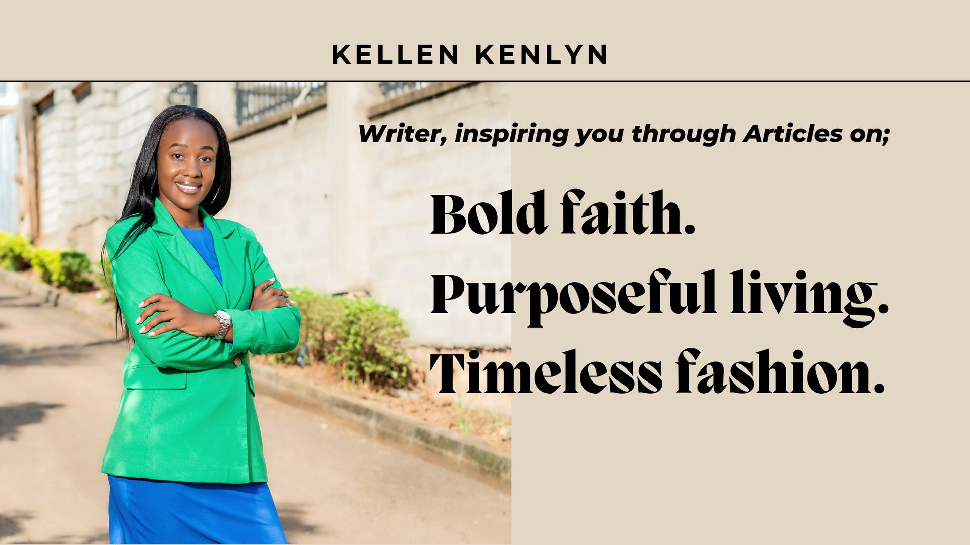 She gave her life to Jesus at a Joyce Meyer Conference in 2002 at the then Nakivubo stadium in Kampala. Kellen has taken John Maxwell's lessons on leadership and personal growth and she currently offers thought leadership on faith, purpose-driven living and timeless fashion.